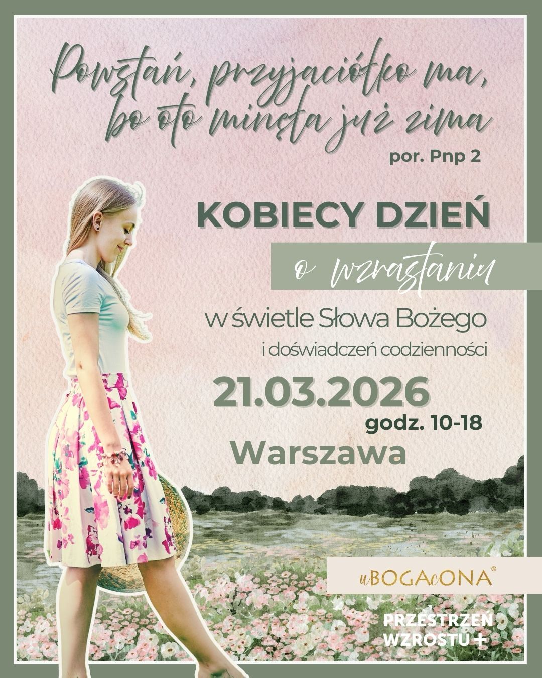 Wiosna to czas wzrostu – także tego, który dokonuje się w nas. Zapraszamy na Kobiecy Dzień o Wzrastaniu, podczas którego zatrzymamy się nad sensem dojrzewania, wysiłku i nadziei w codziennym życiu. W świetle Słowa Bożego, z pomocą warsztatu (Bible Journaling lub skrutacja) oraz inspiracji z logoterapii, poszukamy odpowiedzi na pytanie o sens wzrostu. To czas spotkania, refleksji i dzielenia się doświadczeniem w kobiecym gronie.