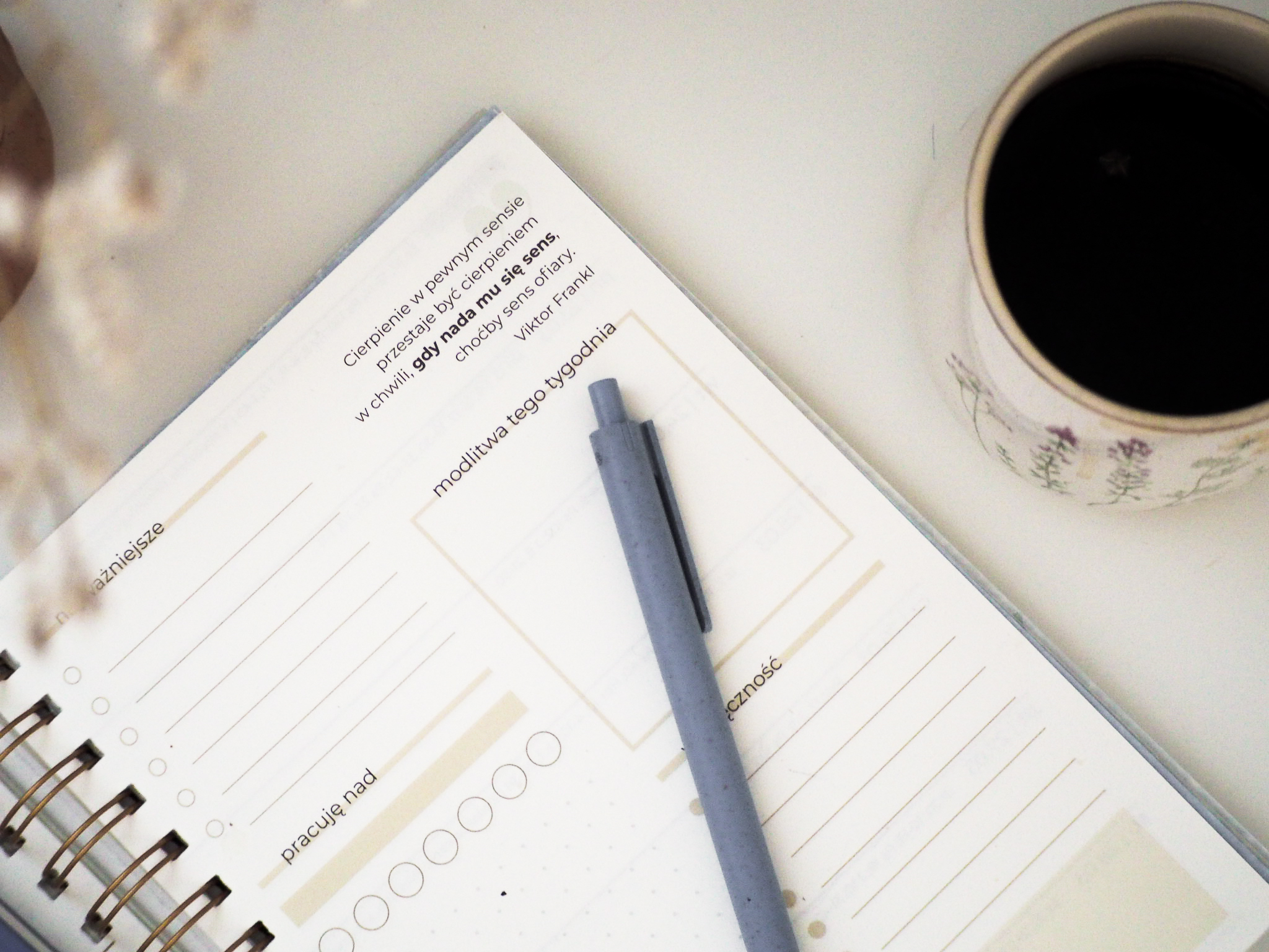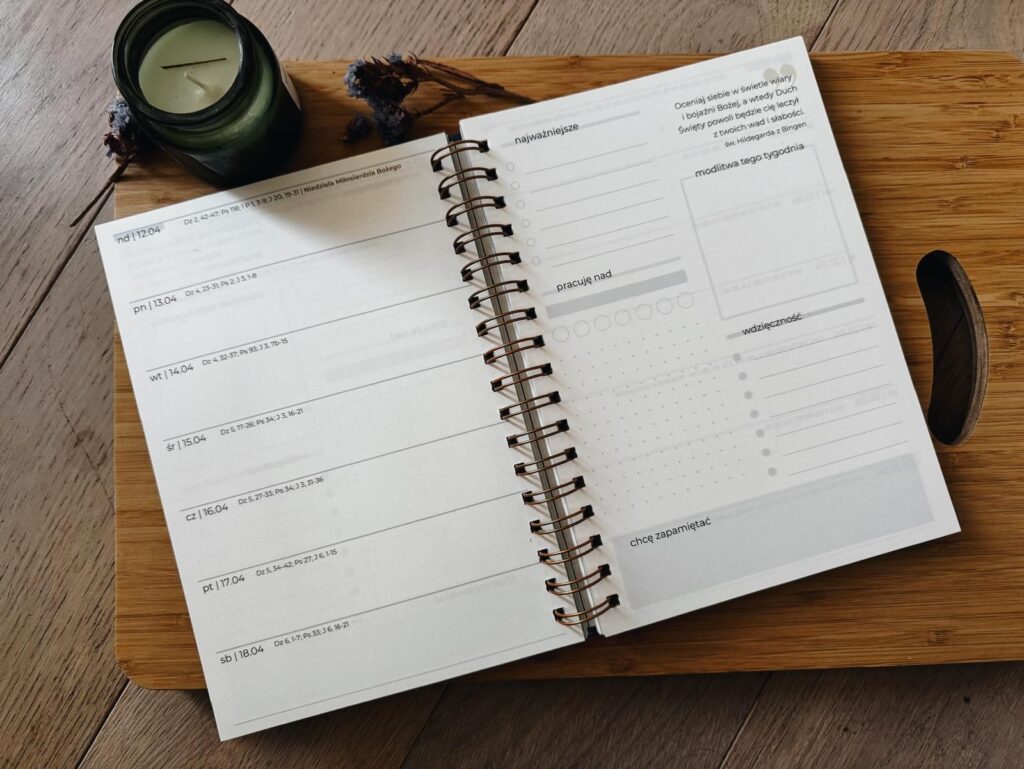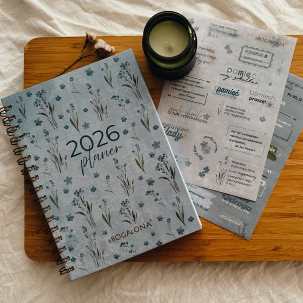 Ten planer to nie tylko estetyczny kalendarz z piękną, akwarelową szatą graficzną. To codzienny towarzysz – przypomina nie tylko o zakupach i spotkaniach, ale też o tym, co naprawdę ważne. Zaprasza do wdzięczności, modlitwy, zatrzymania. Pomaga spojrzeć na życie z Bożej perspektywy.