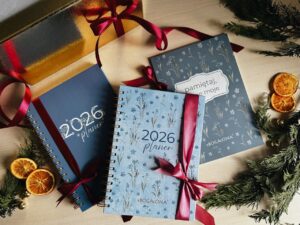 Zestaw prezentowy zawiera dwa Planery UBOGACONEJ 2026 — stworzone po to, by pomagać formować serce, zatrzymywać się nad tym, co najważniejsze, i pielęgnować dobro w codzienności — oraz notatnik Pamiętaj, serce moje, idealny do osobistych refleksji, wdzięczności i modlitwy.